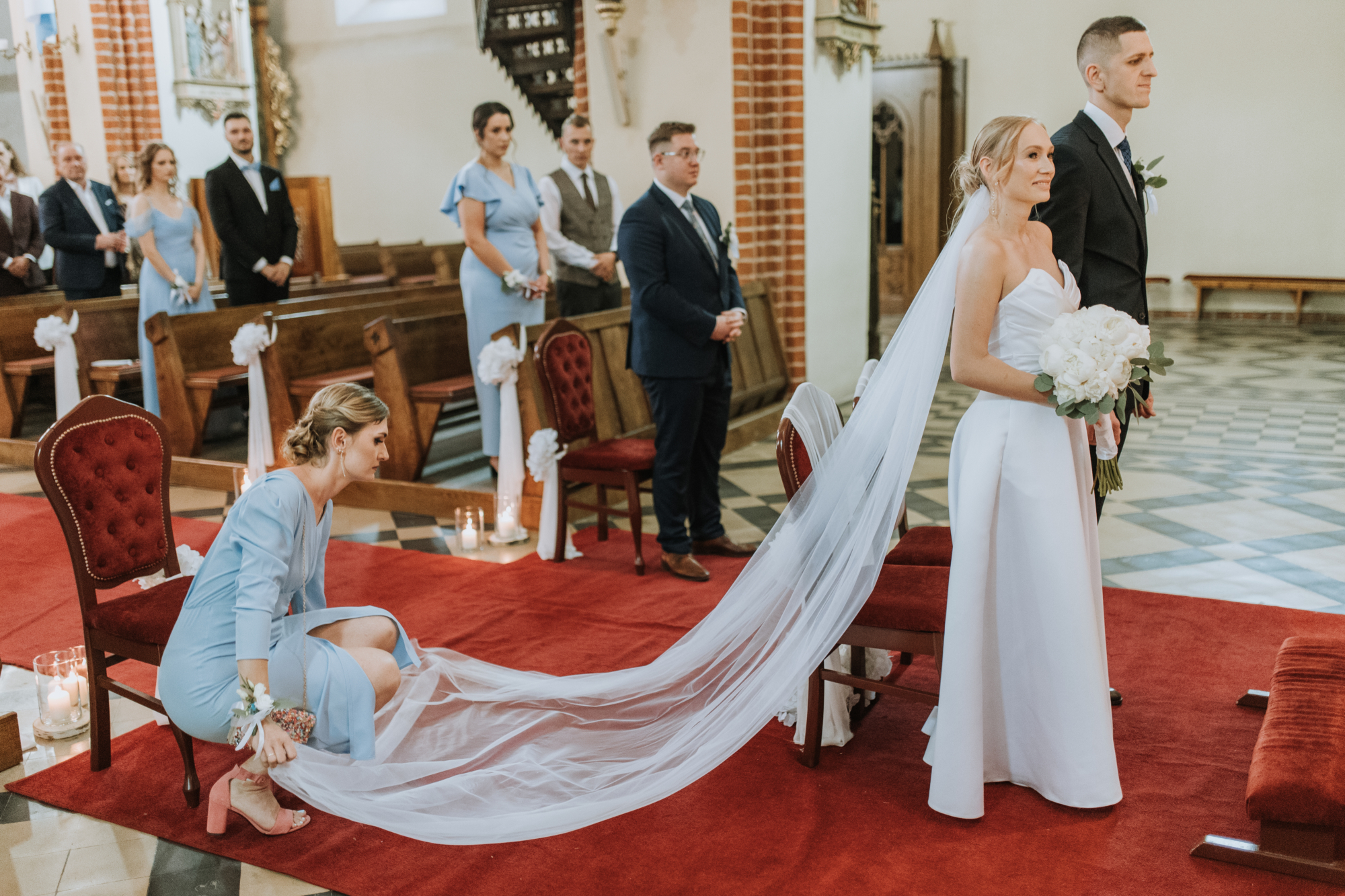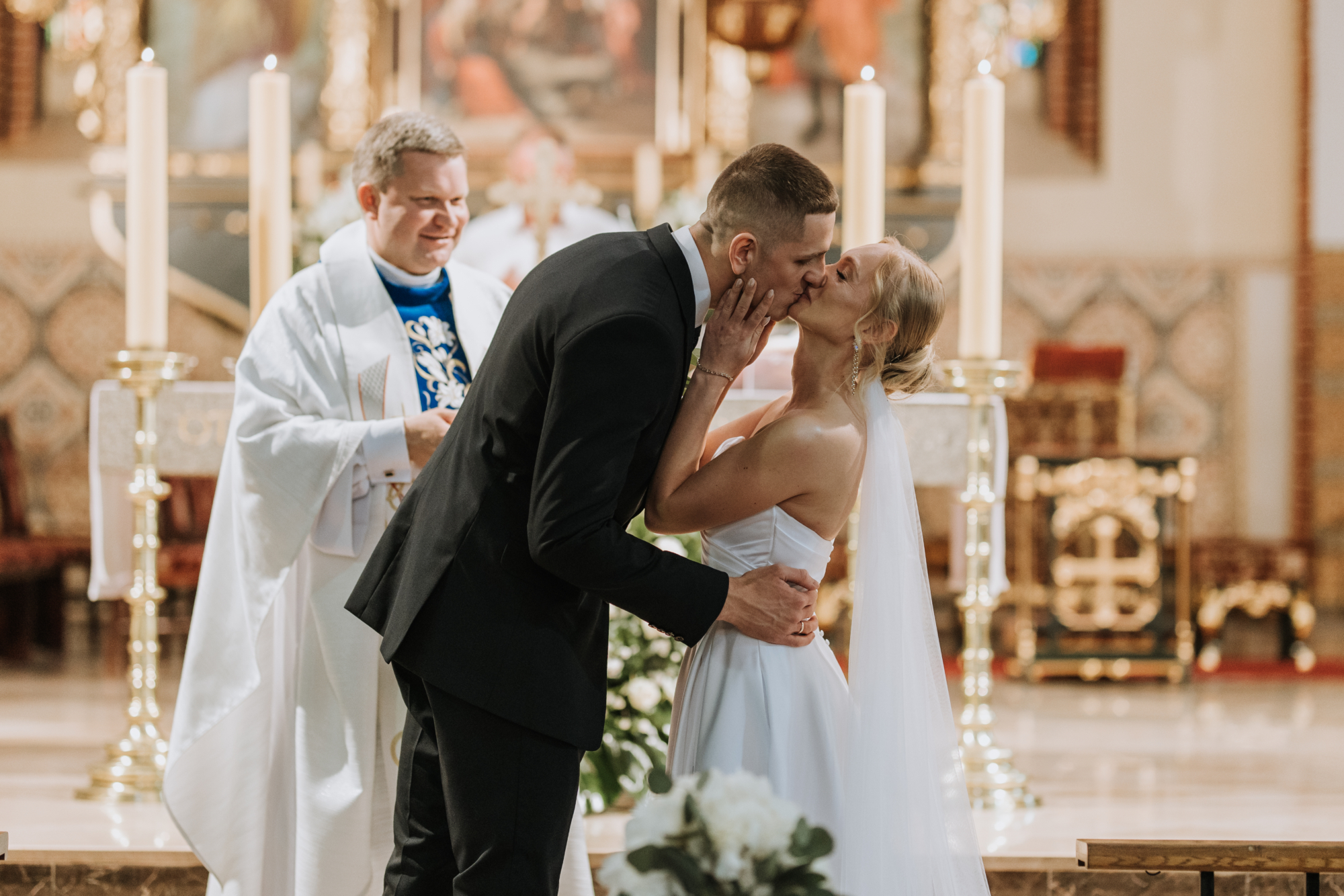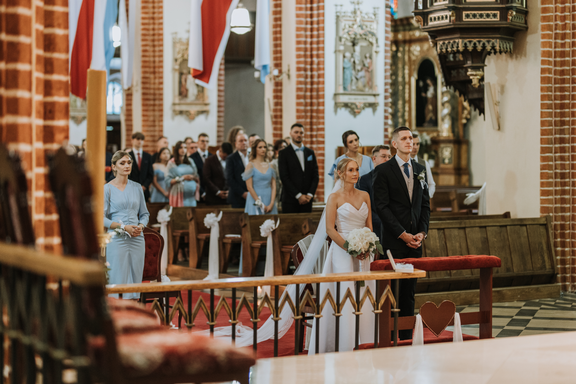 Uroczystość zaślubin w pięknym kościele w Obrzycku była esencją harmonii i wzruszenia. Ania i Maciej prezentowali się absolutnie przepięknie, a ich miłość wypełniała każdy kadr. To był idealny, klasyczny początek tej historii.