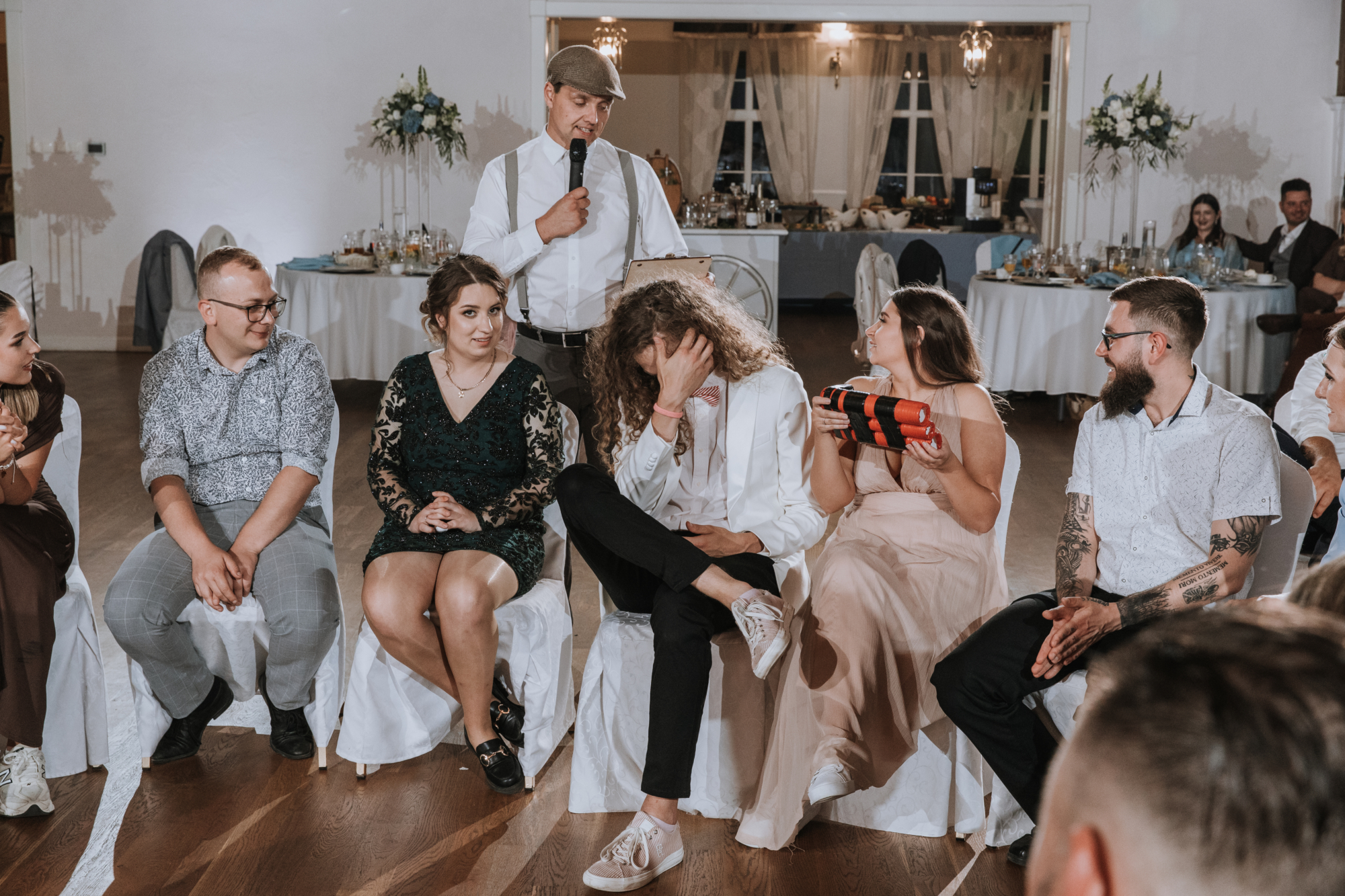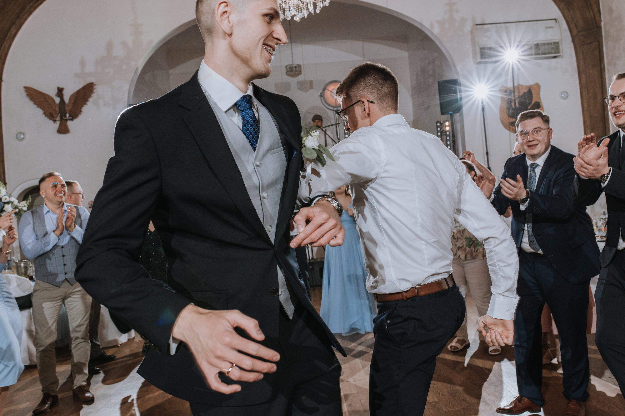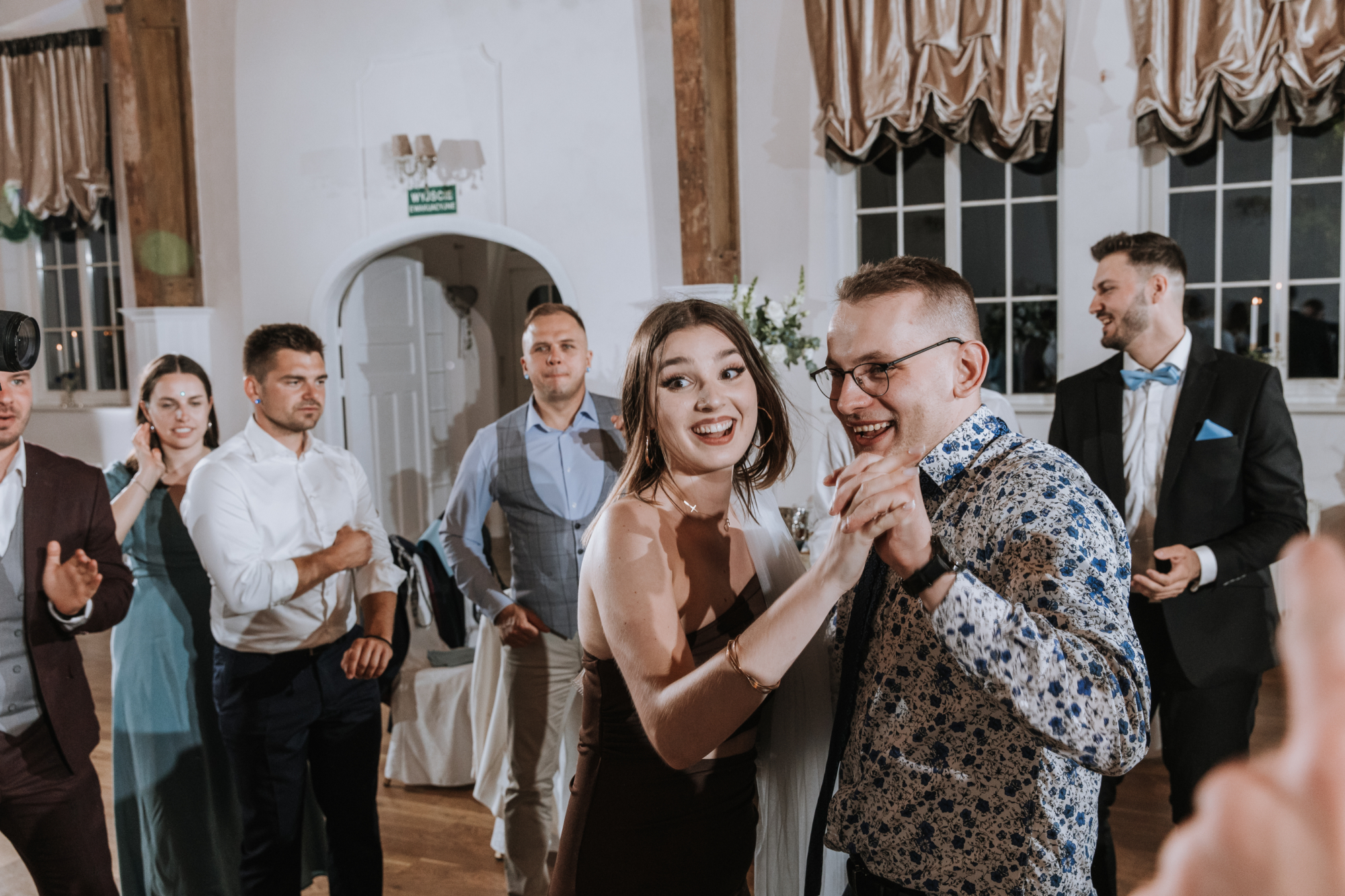 Jeśli jednak myślicie, że na tym skończył się klimat, jesteście w błędzie! Kiedy tylko przenieśliśmy się na salę weselną, stało się jasne, że to będzie wyjątkowa, niezapomniana impreza. Ania i Maciej, będąc wspaniałymi ludźmi z niesamowitym poczuciem humoru, zadbali o to, by ich wesele miało niepowtarzalny charakter.