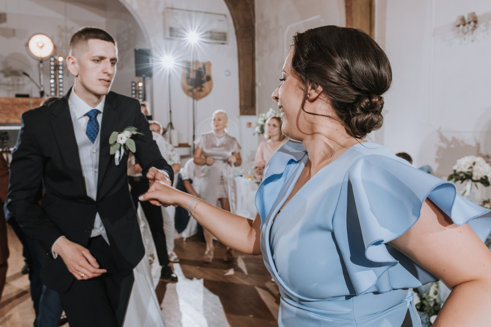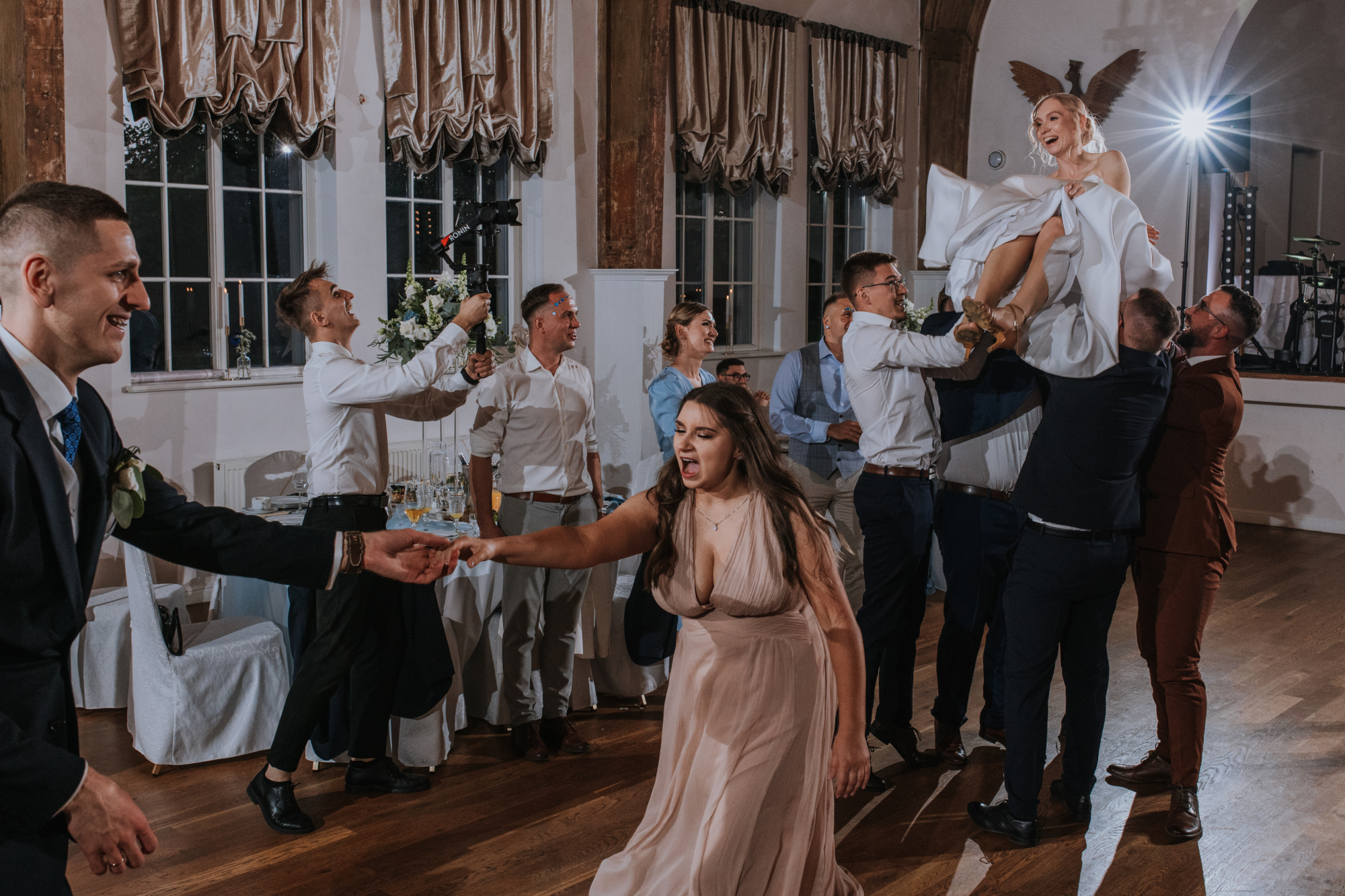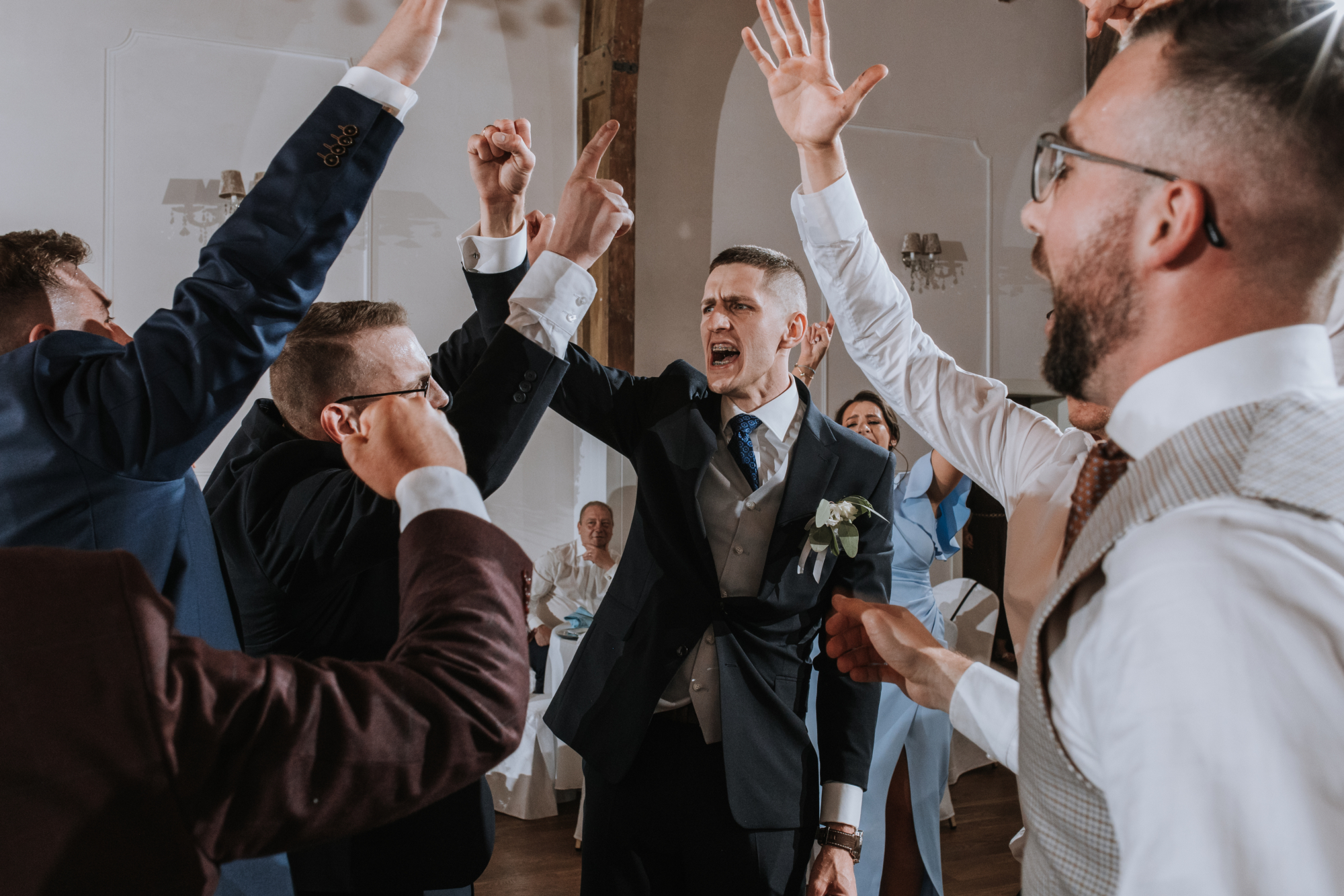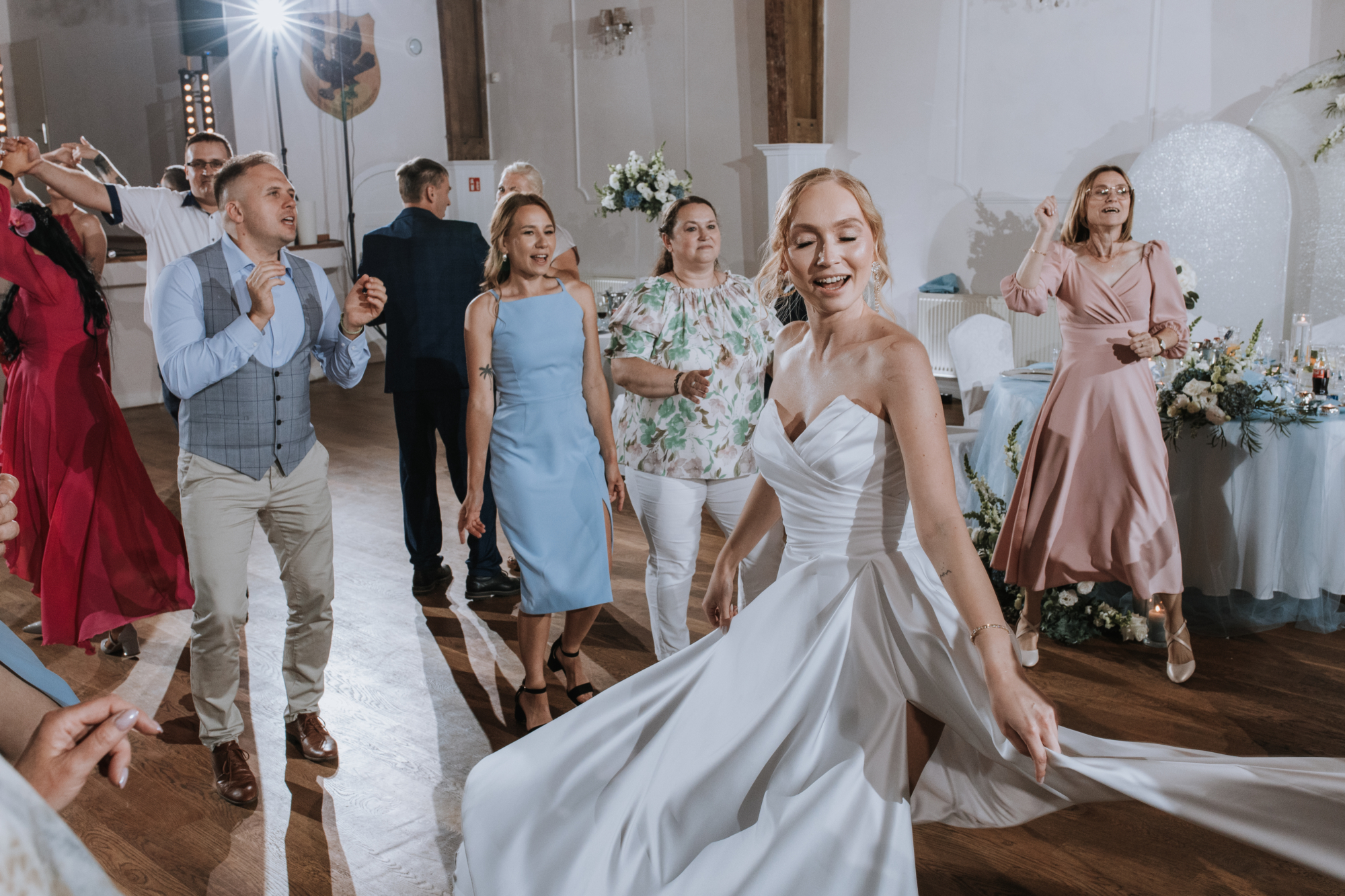 Jeśli jednak myślicie, że na tym skończył się klimat, jesteście w błędzie! Kiedy tylko przenieśliśmy się na salę weselną, stało się jasne, że to będzie wyjątkowa, niezapomniana impreza. Ania i Maciej, będąc wspaniałymi ludźmi z niesamowitym poczuciem humoru, zadbali o to, by ich wesele miało niepowtarzalny charakter.